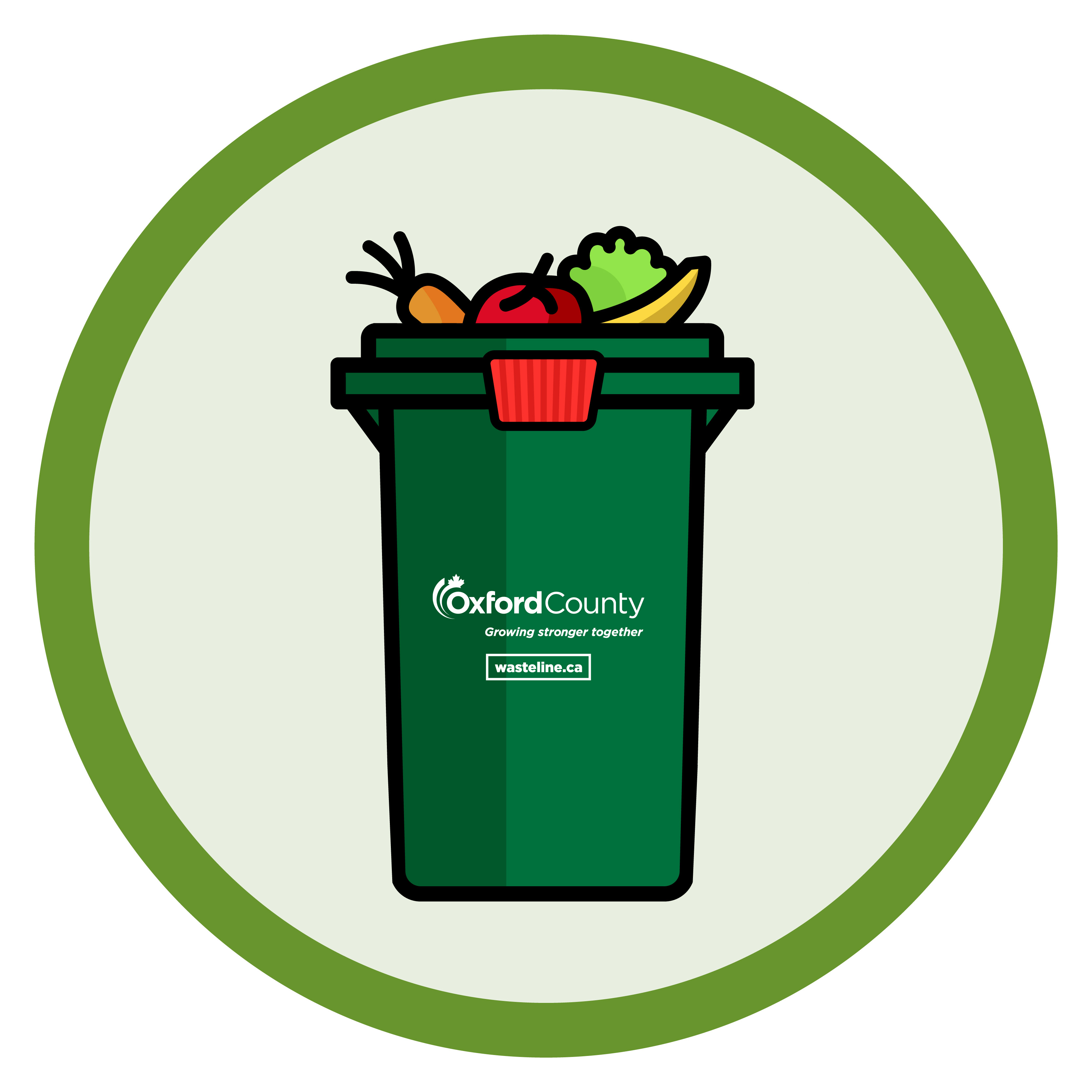 - When they join the program, each Oxford County residence will receive a 7-litre kitchen container to collect food scraps and a 45-litre green bin to set out at the curb on collection day.