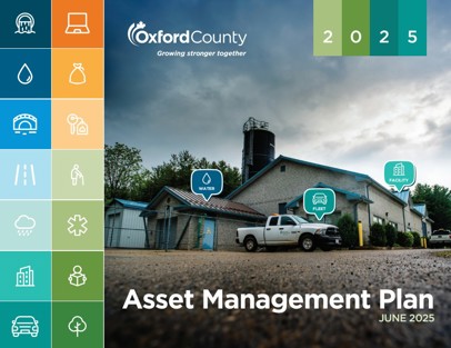 Oxford County's 2025 Asset Management Plan supports provides a strategic framework for managing assets, aligning assets with service objectives, documenting core practices and procedures, and guiding the action and investment needed to meet key business goals. Visit the Asset Management site